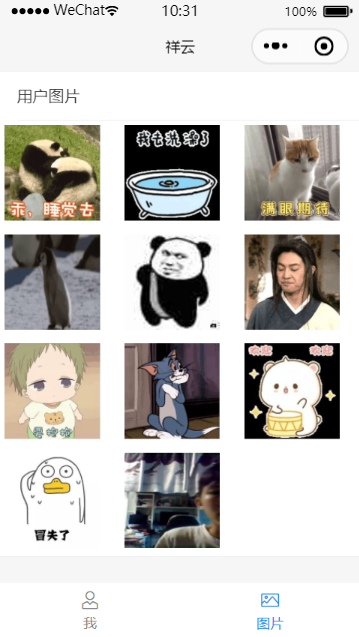 首页,我使用了openid云函数获取云数据库里面的用户信息列表,又使用了vant组件库里面的tabBar来简化用户的操作,方便用户直接操作照片。