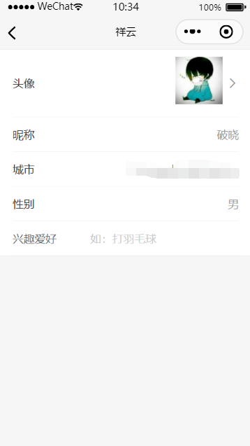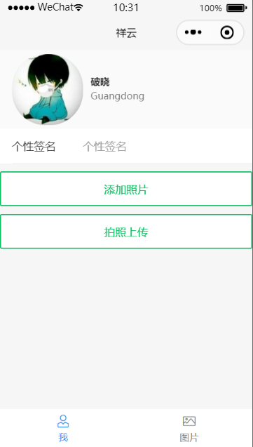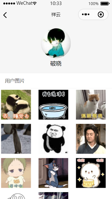 接下来,就是用户界面,使用导航api可以获取该页面路径,以便获取用户的信息和相关图片。图片采用vant组件提供的row,col布局,而点击头像进入的信息页面则是采用group和cell,对照片进行适应处理