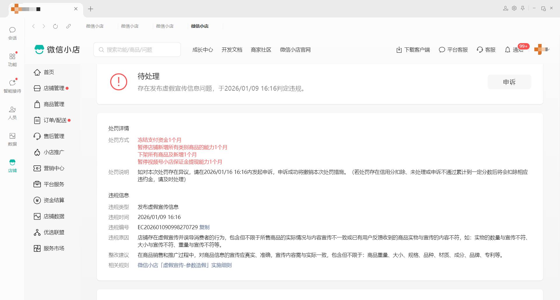 刚在平台开的新店铺,被某名处罚,申诉被驳回也没有详细说明,有明白原因的吗?