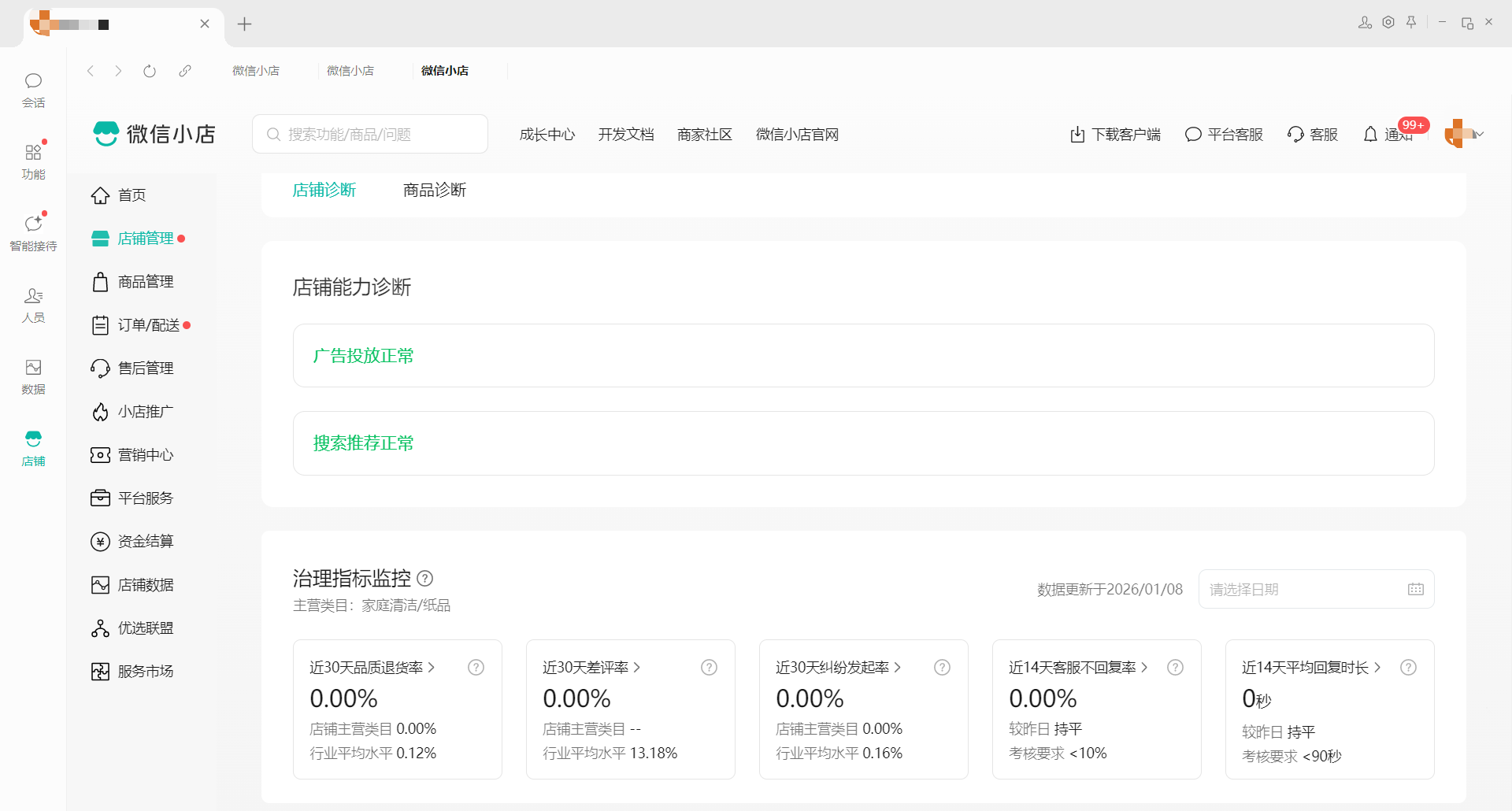 3.查询了诊断中心,并没有任何负面数据,0品退,0差评