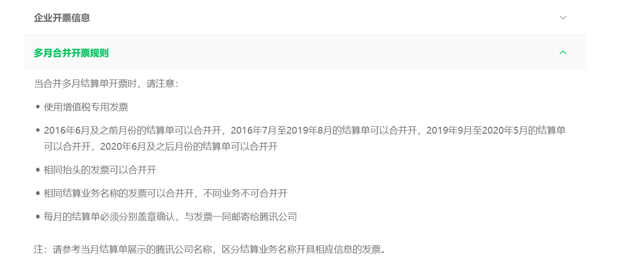 你好,多月合并开票规则可参考官网帮助中心:https://ad.weixin.qq.com/docs/82