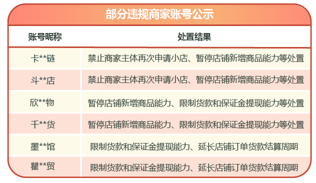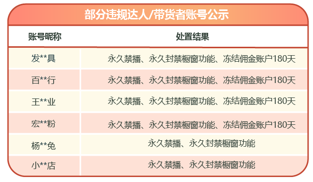 以下是近一周被处置的部分情节严重的商家、带货者名单: