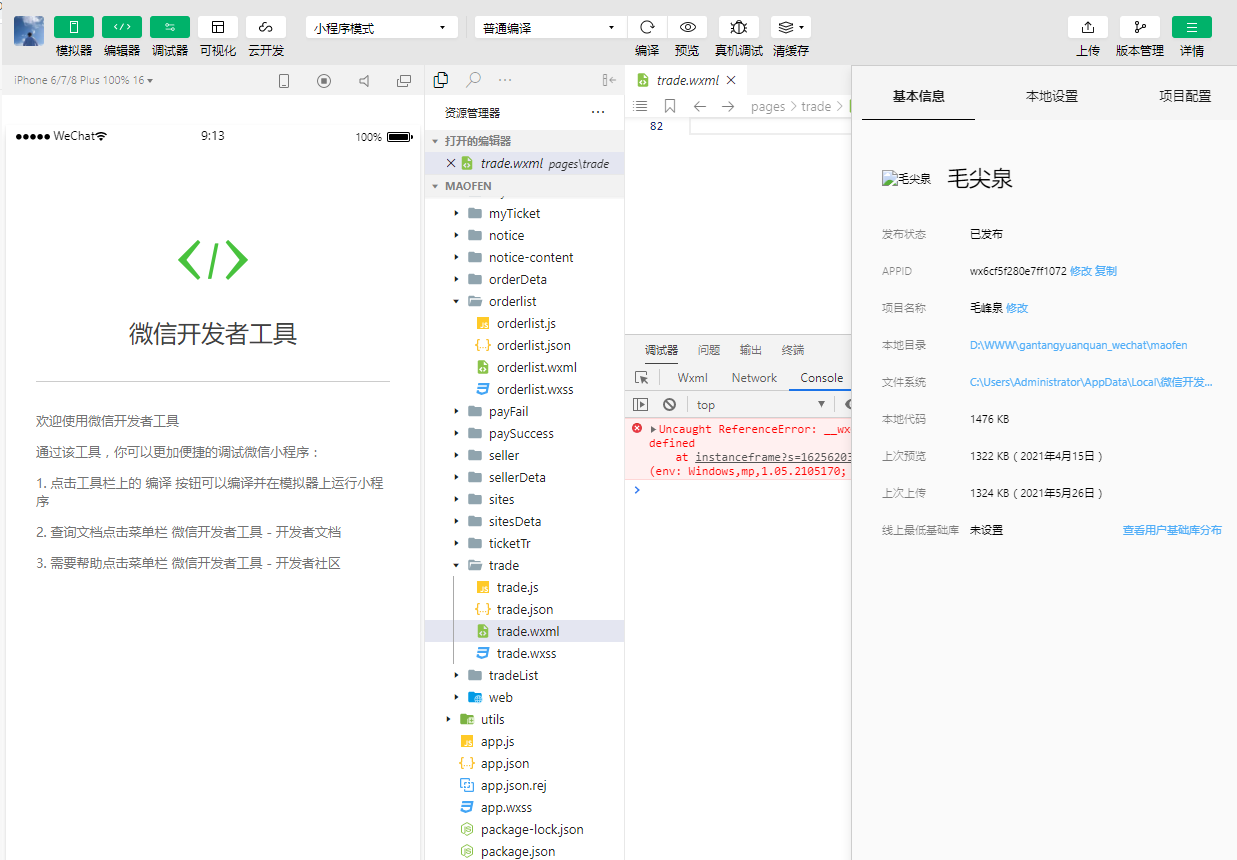 小程序都已经上线了,本地的代码之前都是可以的。然后今天打开,忽然报__wxConfig is not defined的错误。而且页面都一片空白,开发者工具直接打不开项目。这是什么情况啊?