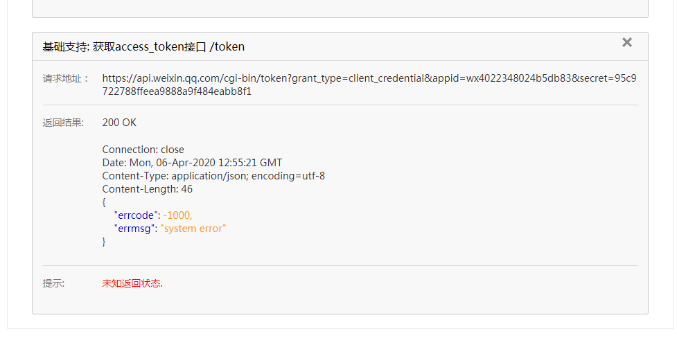 你好,问题未解决的话,请提供下appid,最近一次操作时间,请求地址和返回结果都复制粘贴下