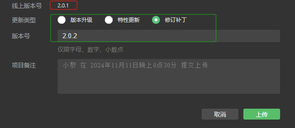 上传的时候不是有线上版本号么,而且选择不同更新类型也有推荐版本号