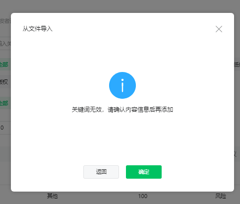 下载的关键词模板,填上内容后,怎么老是提示“关键词无效,请确认内容信息后再添加”