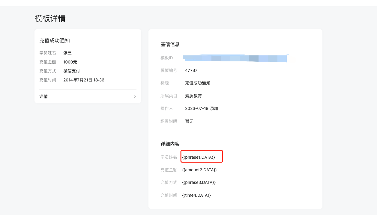 这个模板的学员姓名phrase,一些用英文名的学生或者因为有重名通过张三1张三2作为姓名的这种模板都发送不了,api直接返回错误!