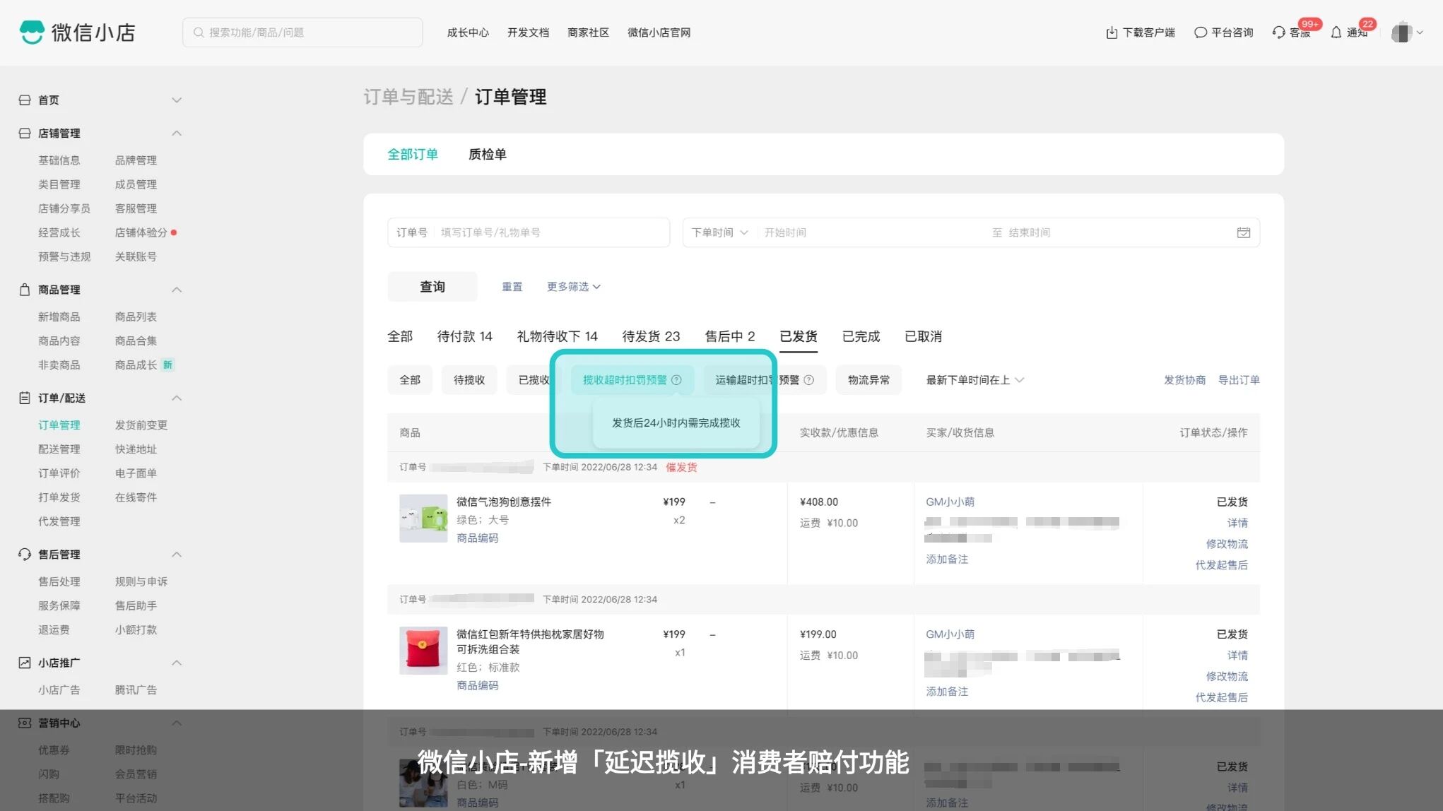 详细请查看:《微信小店「延迟揽收」消费者赔付说明》