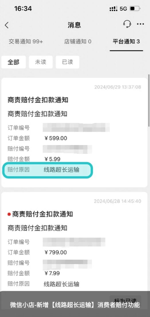 详细请查看:《微信小店「线路超长运输」消费者赔付说明》