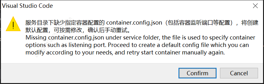你好,麻烦截图看下vscode 目录树,还有截个图看看 container.config.json 的内容,我们定位下。