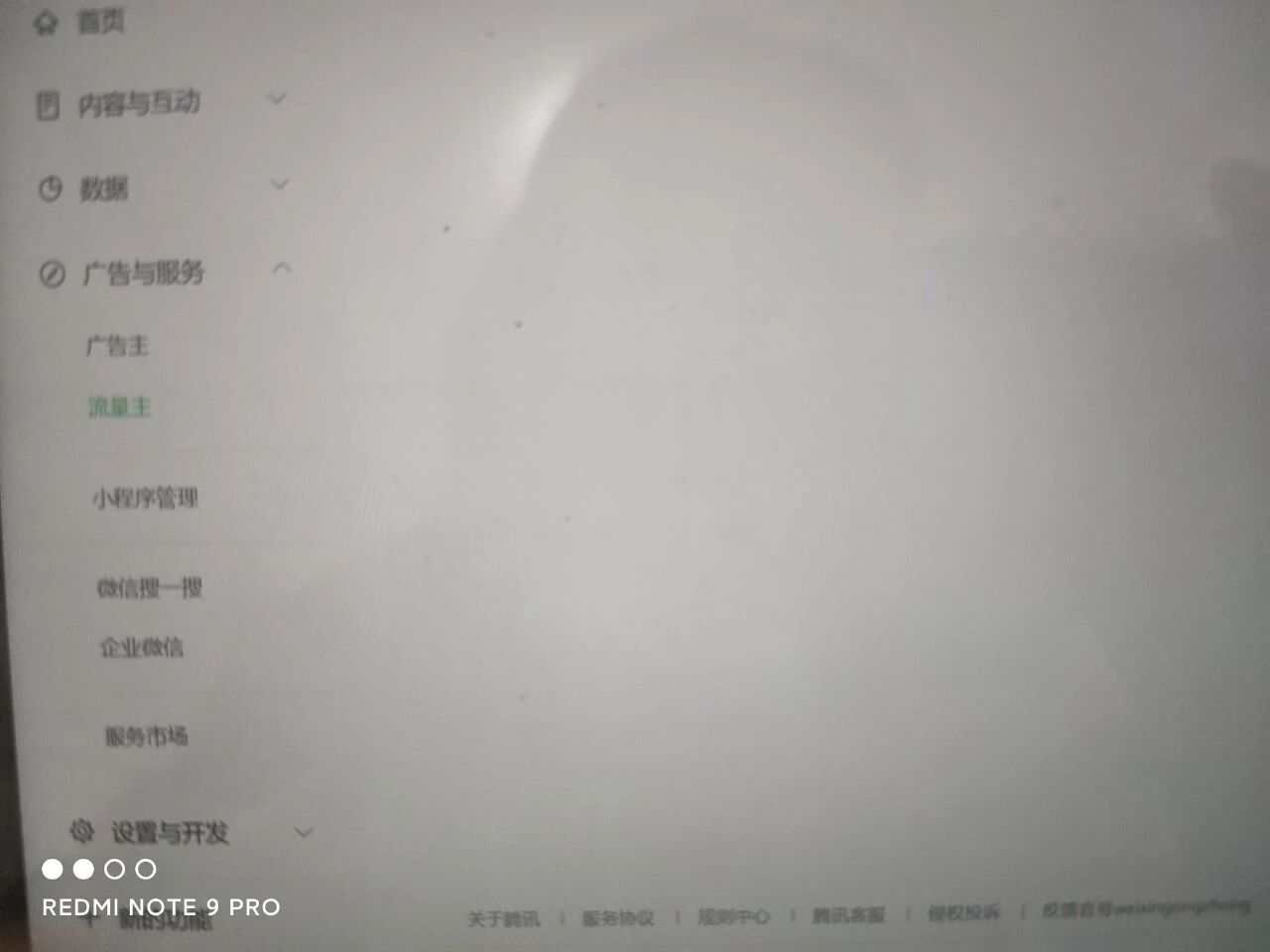 流量主和广告主这两个页面打不开,显示灰白色,其他界面都可以正常打开。