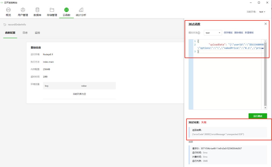 所以我猜测,是云开发的测试功能有bug???