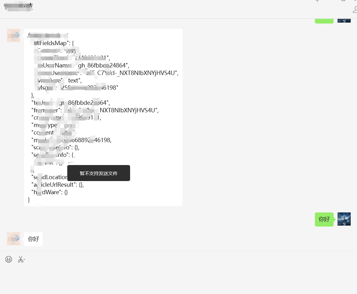 你好,不支持文件消息