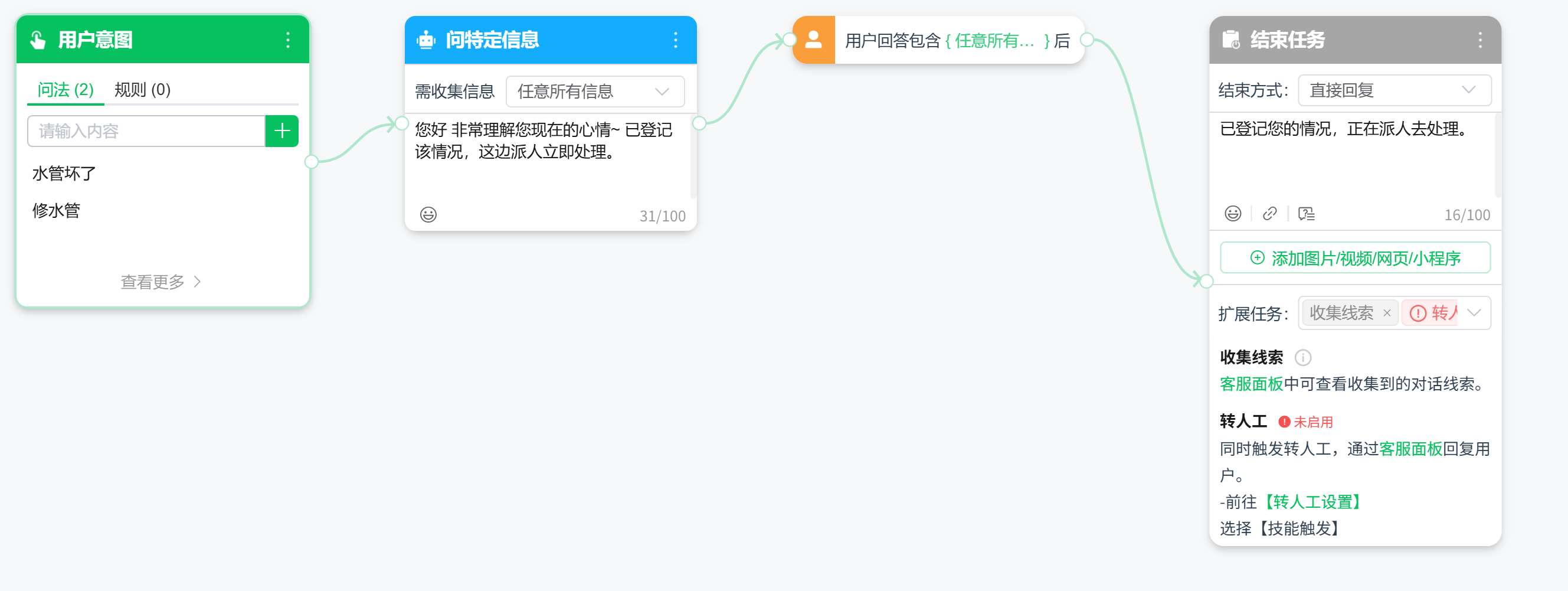 1.业主打电话说漏水什么报修,机器人首先要做的是情绪安抚,回复已登记,派人立即处理之类的,有可能业主还会说什么时候来,之前报修也修不好,这样一轮一轮的多轮对话,可以实现吗?