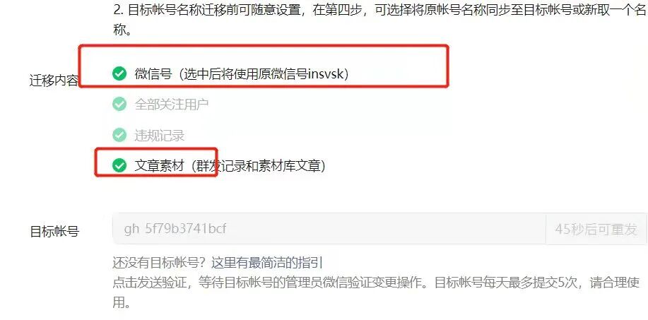 原 账 号 原始ID:gh_ddb5e16859be 目标账号 原始ID:gh_5f79b3741bcf 迁移后微信号至今没有迁移过来,不仅没迁移过来,目标账号原来的微信号也没有了,显示 tmp_数字微信号,确定迁移时勾选了迁移微信号,不然现在也不会显示tmp_微信号 请问这该怎么办。