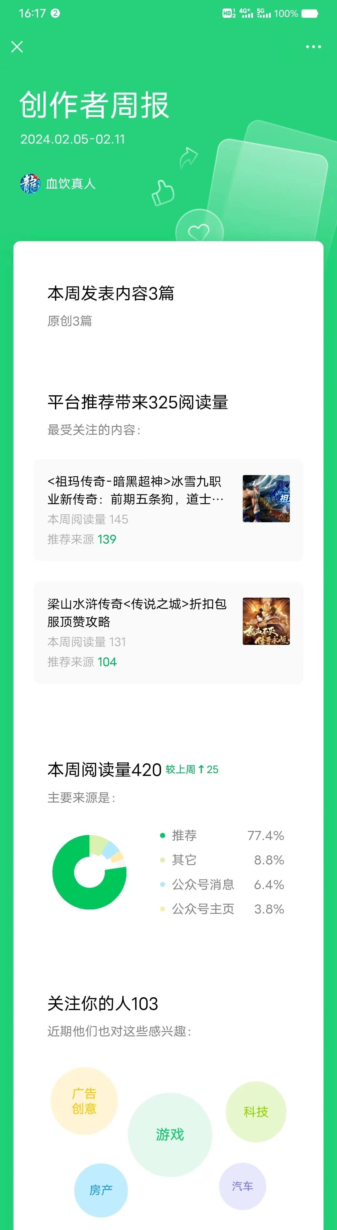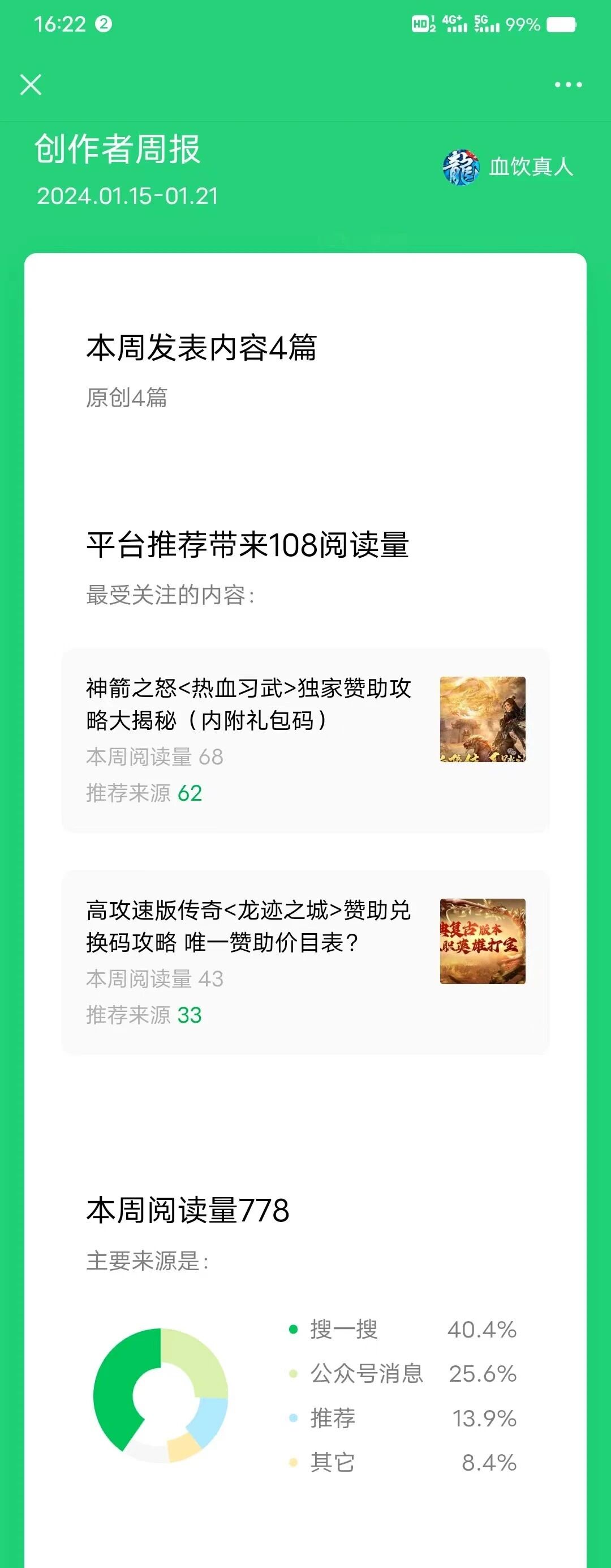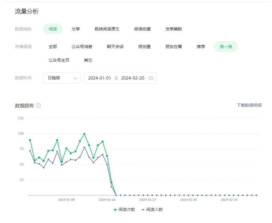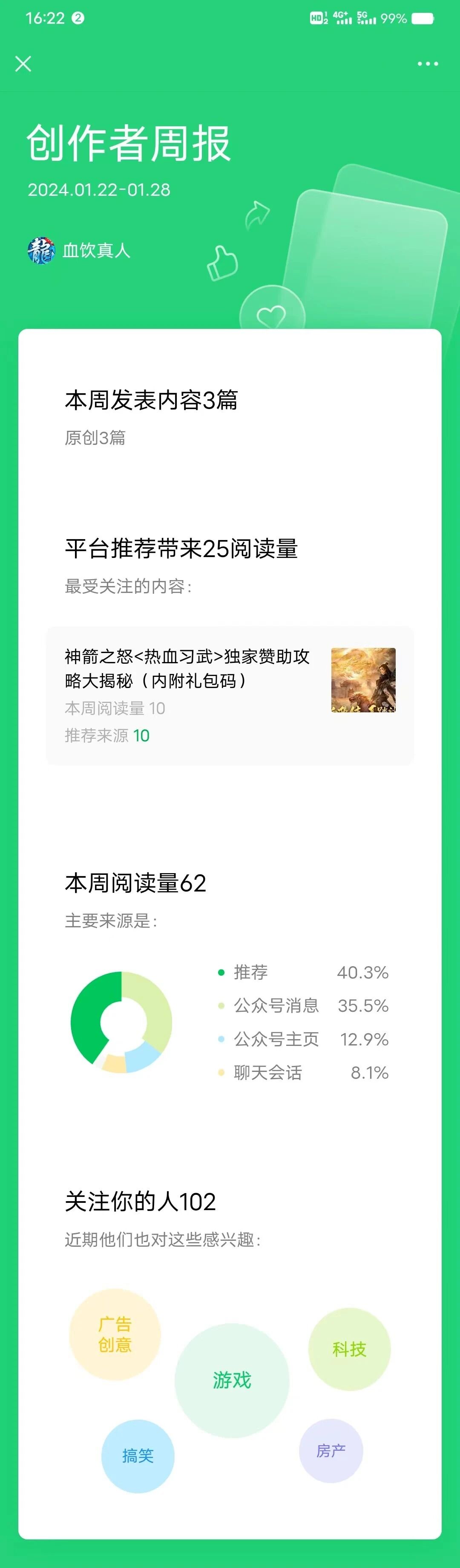 反而提醒我提高文章质量的问题,但其实我的账号收录问题存在于1月18号开始,后续我一直有更新原创文章,但所有文章全部都不收录,甚至历史文章也不被微信搜一搜收录,如果文章质量存在问题我觉得除了搜一搜之外其他的推荐量不应该不受影响啊?但目前来看只有”搜一搜”渠道的流量有问题。
