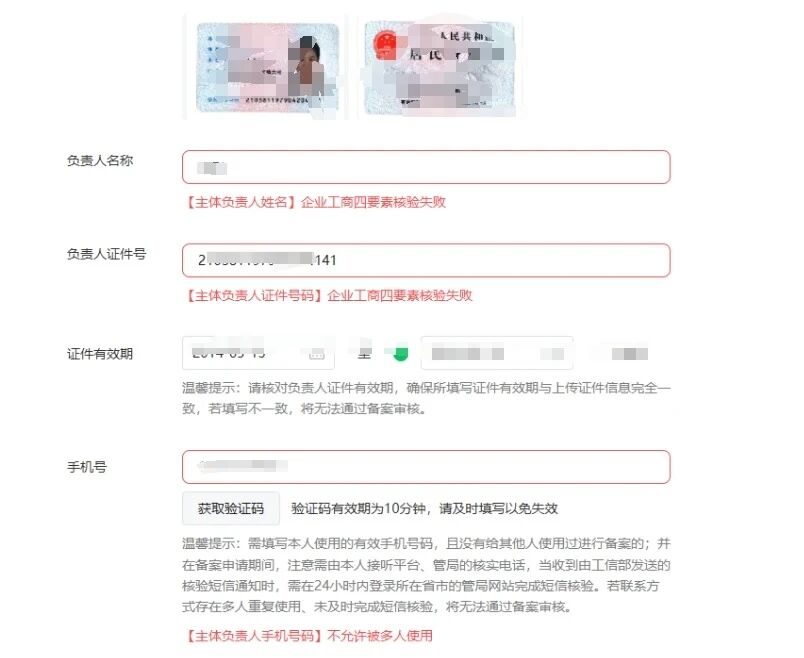 小程序备案环节,企业工商四要素验证失败, 是什么原因,已经查了工商数据,都是正确的,