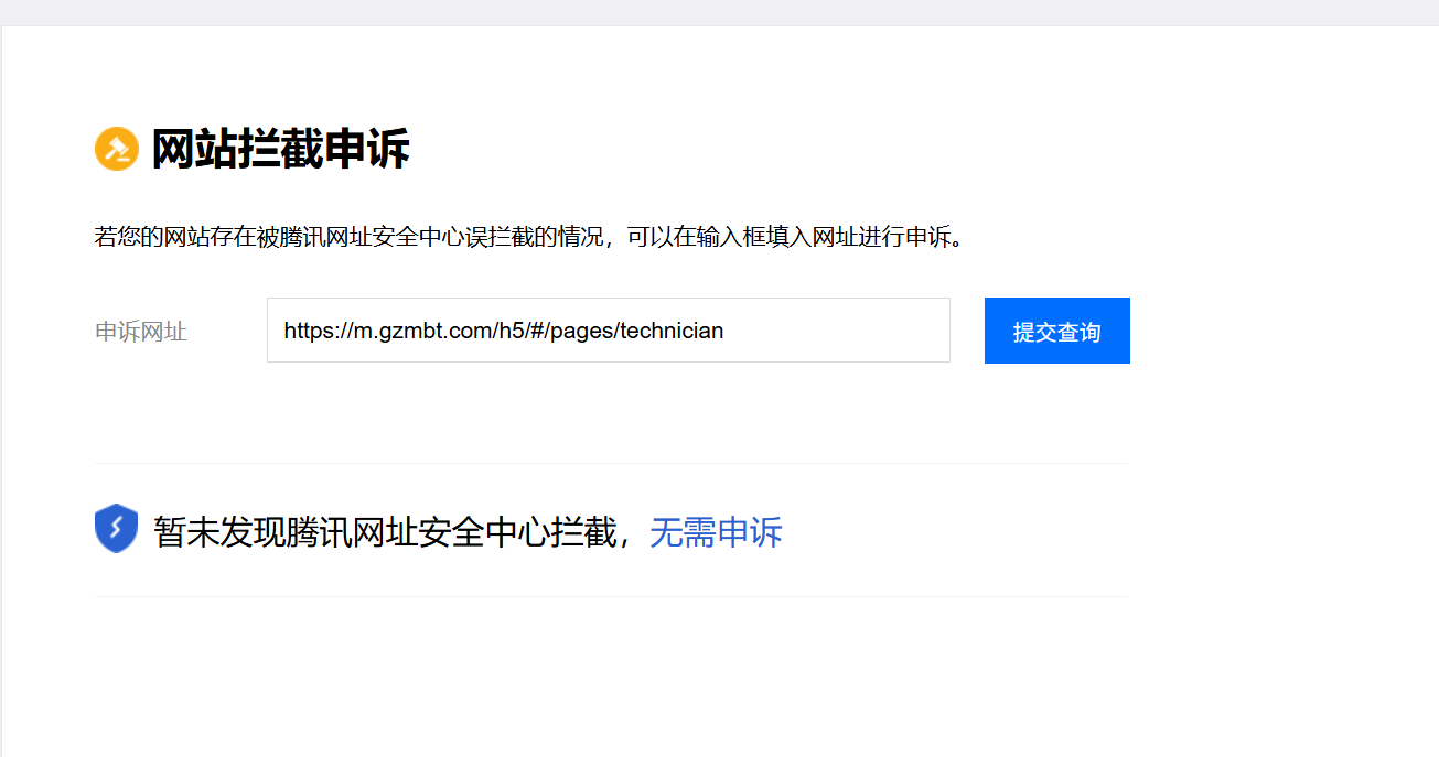 腾讯网址安全中心显示,暂未发现腾讯网址安全中心拦截,无需申诉,服务号的js接口,域名都是已经配置好的,备案也是没有问题的,请解除限制恢复正常访问