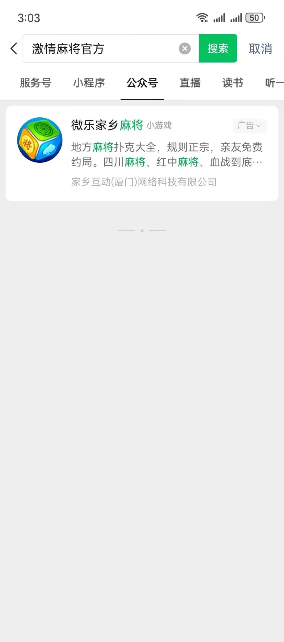 求问,为什么我的公众号“激情麻将官方”搜不到呢?已经完成了认证的,从注册到现在一直搜不到,问了客服也没人理