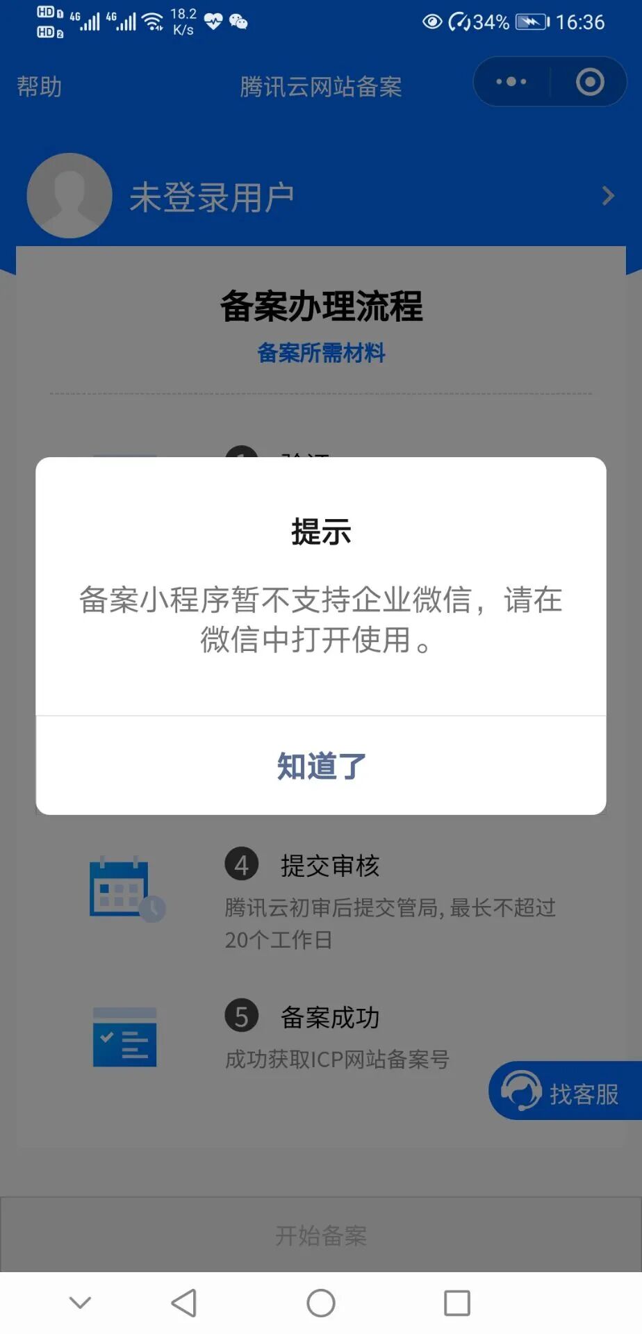 我有一家个体工商户营业执照需要备案同等性质的域名,也就是企业备案。可是,用企业微信扫描以后,提示不能打开,说是企业微信不支持。而个人又备案不了,这怎么办啊?