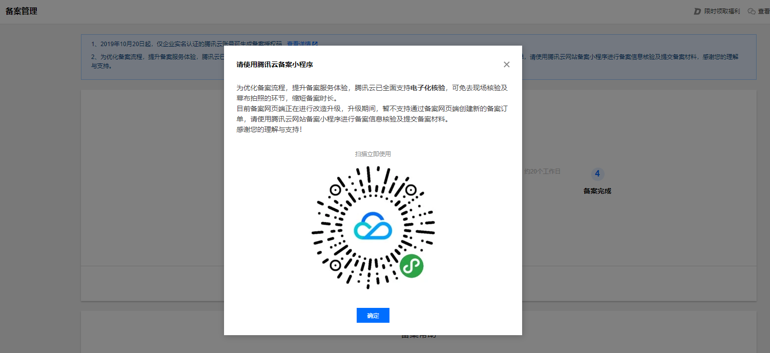 腾讯云备案,目前是要用微信扫描小程序,然后备案,个人只能备案个人性质的域名,而企业是必须要企业性质的微信才可以,如果不是就会显示申请主体不一致,