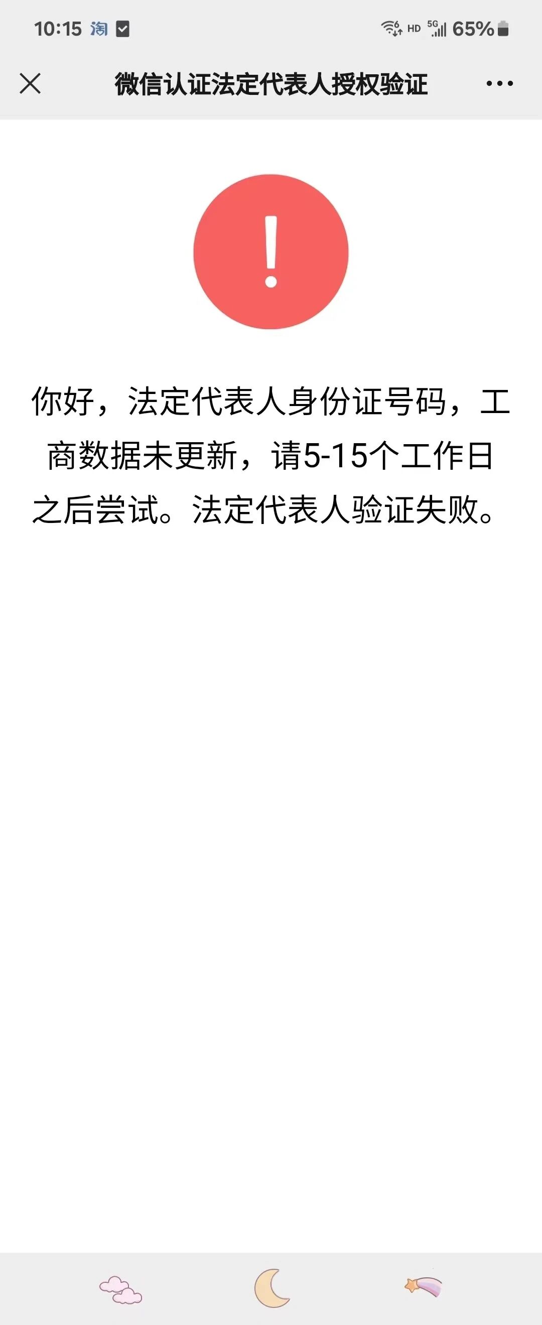 注册开放平台一直提示:你好,法定代表人身份证号码,工商数据未更新,请5-15个工作日之后尝试。法定代表人验证失败。营业执照5月20号变更信息的,看下怎么帮忙处理一下。