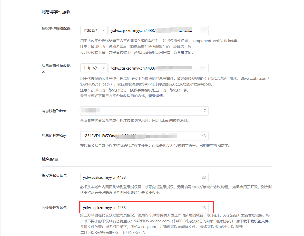 公众号开发域名:yxfw.cqskzqrmyy.cn:4433
