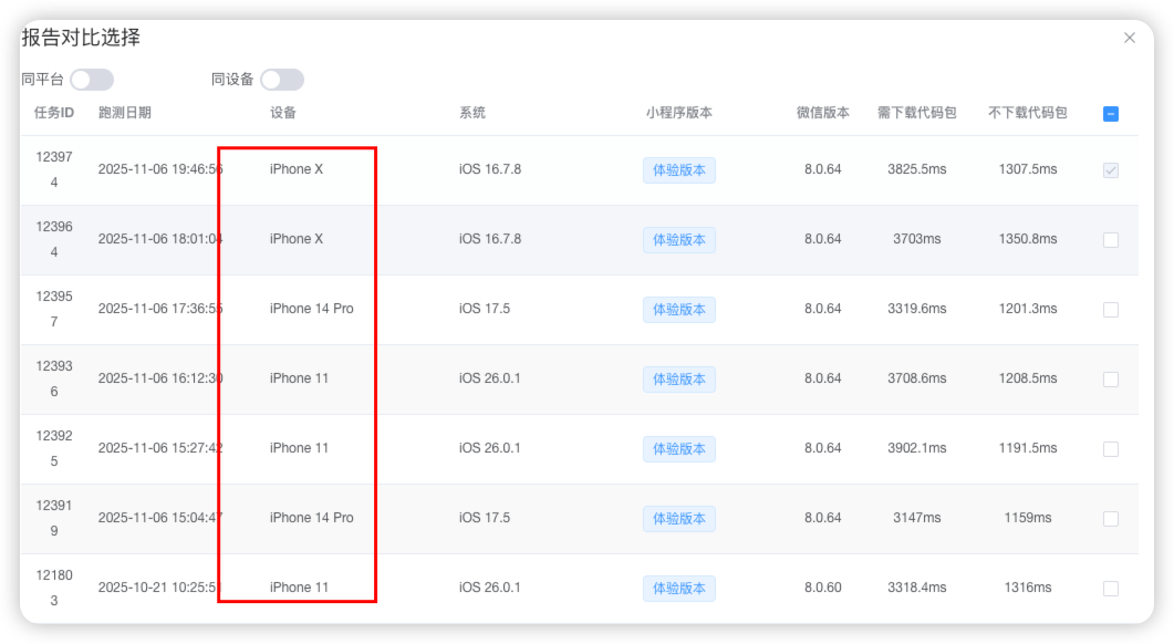 有时候是iphonex,有时候是14pr,有时候是11。想做优化前后对比,机型变来变去的,很麻烦。