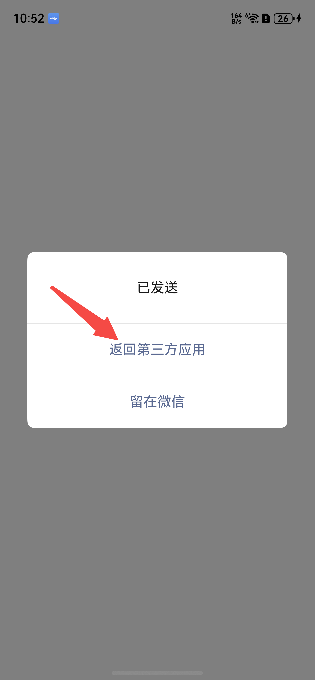 2、然后在app内再次分享到微信,此时在微信点击返回第三方应用