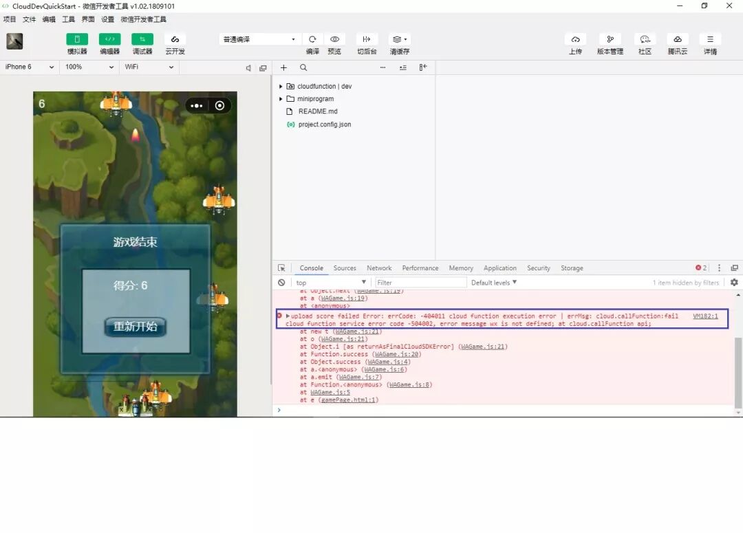 upload score failed Error: errCode: -404011 cloud function execution error | errMsg: cloud.callFunction:fail cloud function service error code -504002, error message wx is not defined; at cloud.callFunction api