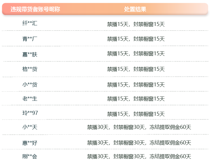 请各位带货者严格遵守平台相关规则,恪守法律道德底线,共同营造健康合规的交易环境。
