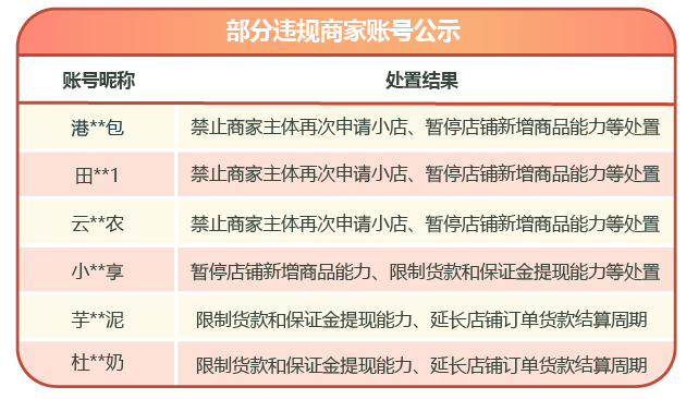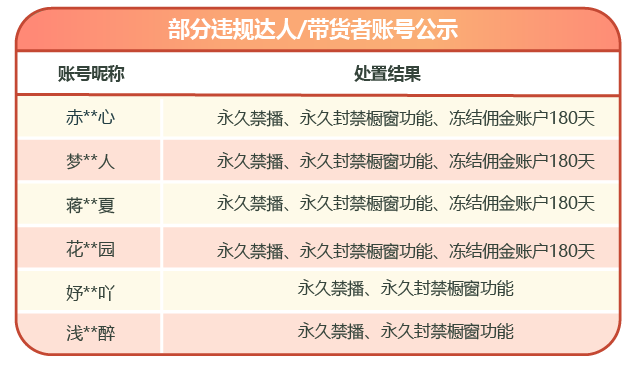 以下是近一周被处置的部分情节严重的商家、带货者名单: