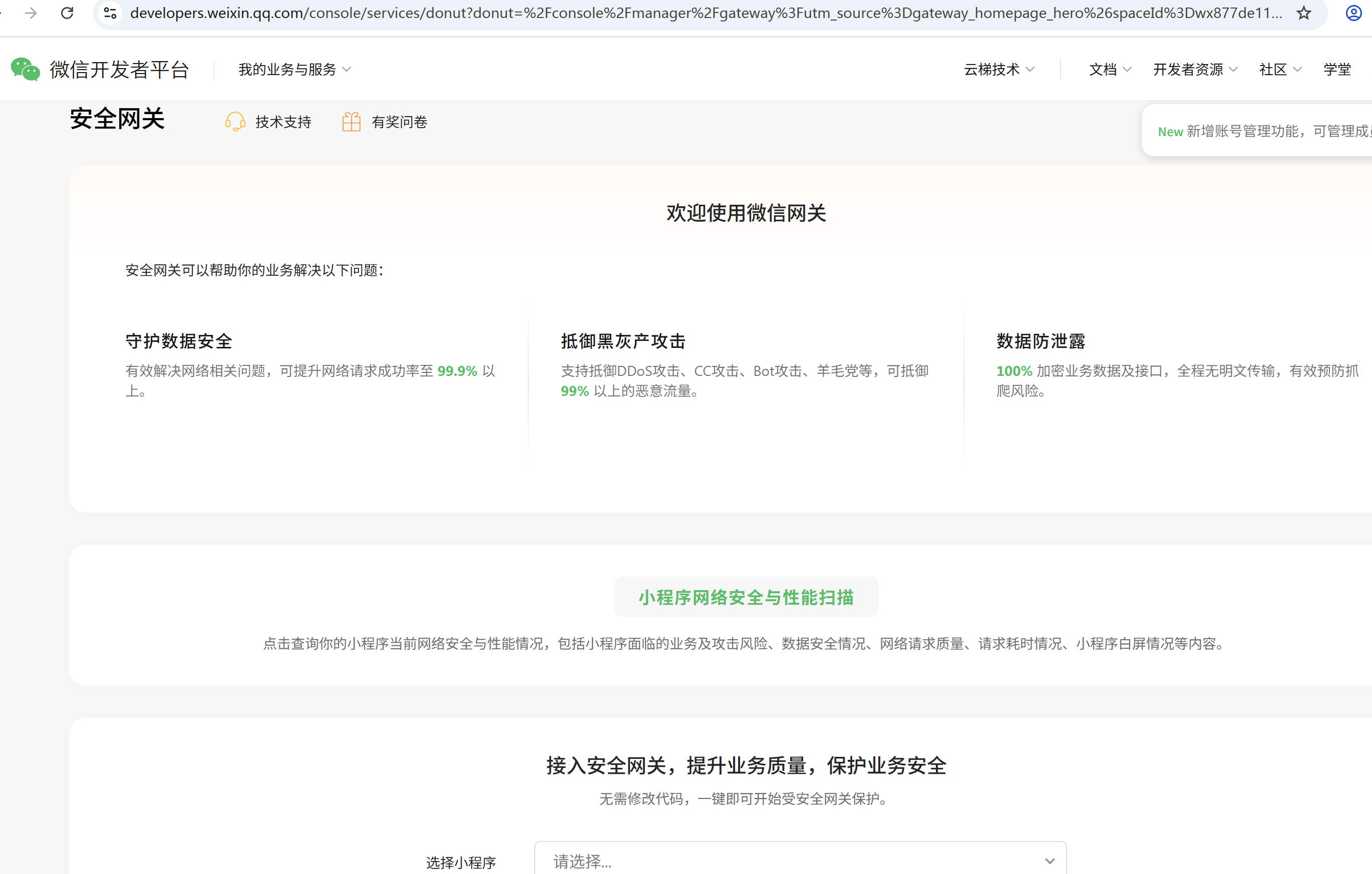 我们是近百万日活的H5且大多都是在微信内访问,想用微信网关防止DNS劫持。在接入的时候只看到了微信小程序的接入,没有找到h5的接入。