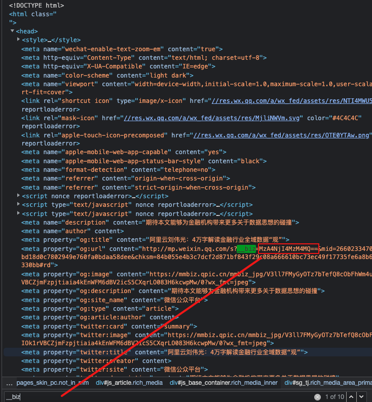 第二步: 按住F12或者右键查看网页源代码 ,全局搜索 __biz,将后面跟的参数替换下面的XXX