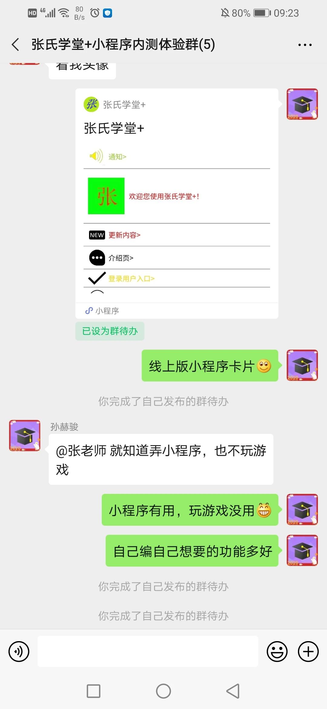 一个群待办是小程序类型,每次点进去都需要完成群待办,而不是第一次完成了群待办后面点进去小程序就不需要再完成了。