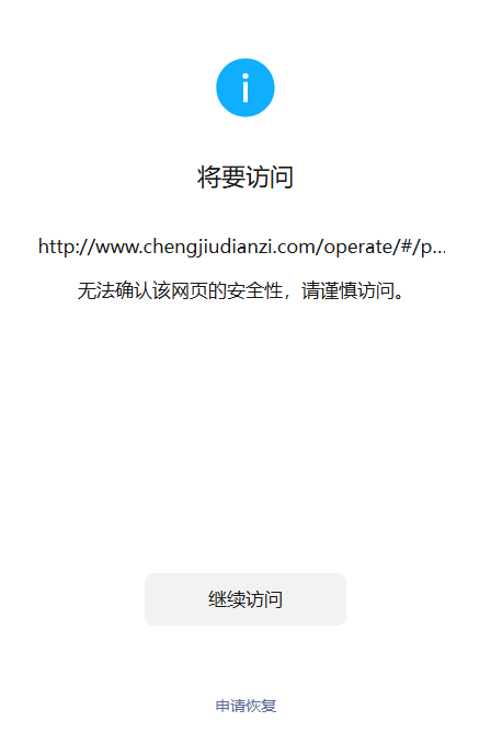 chengjiudianzi.com域名已经在工信部备案了,但相关域名扫二维码或服务号菜单链接跳转到H5都会提示无法确认该网页安全性...,怎么解决该问题提示?