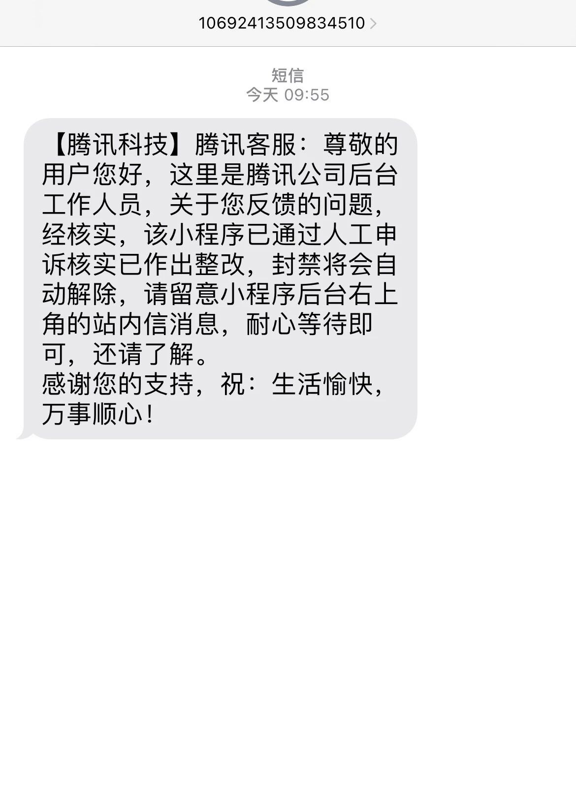 因为未设置违法违规信息过滤被封禁 10.17日提交人工申诉至今 联系腾讯客服回复已经通过等待解禁 可是至今没有等到解禁 麻烦审核人员帮忙看看: wxa495e59d6735b067