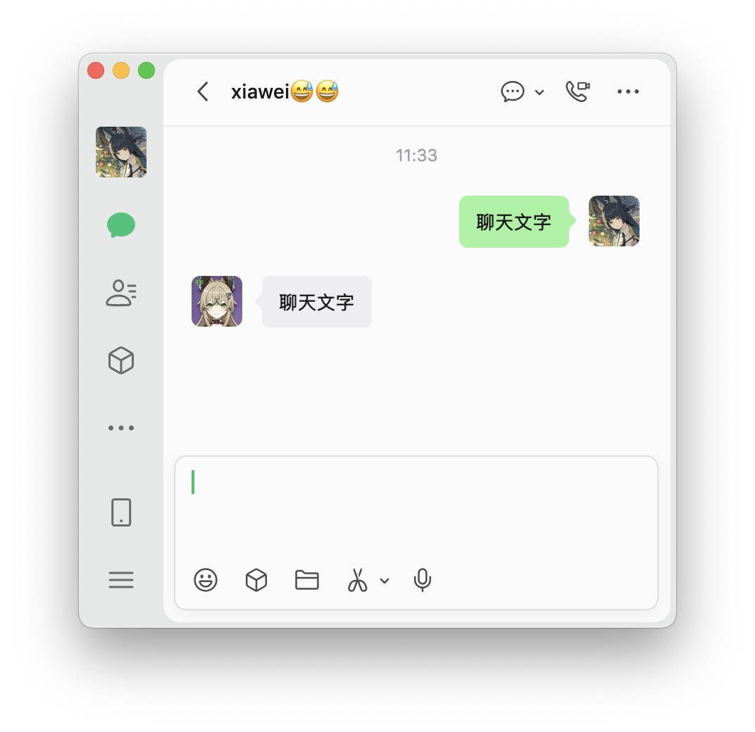 自己发出的是 绿色背景呐。同手机一样的