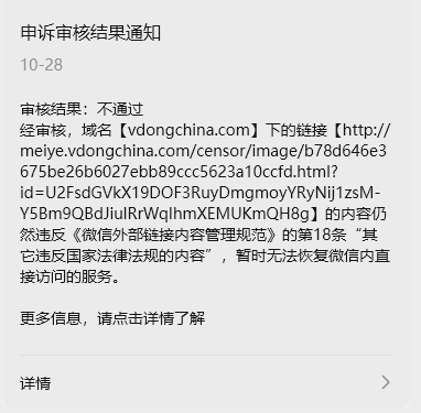 我们的域名被封 现在这个项目已经完全移除了,现在访问就是404 ,我们申诉不通过,但是微信依旧提示,麻烦官方处理一下