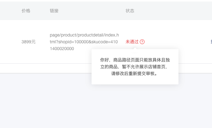 我这个路径只是一个商品的详情页面,这是一个完整的电商小程序,是可以通过这个详情页跳转到首页或者其它页面的,审核不通过的原因是因为有首页的入口么?难道目前直播的商品只能跳转到详情页然后只能购买或者不购买,不能去到任何商户首页?