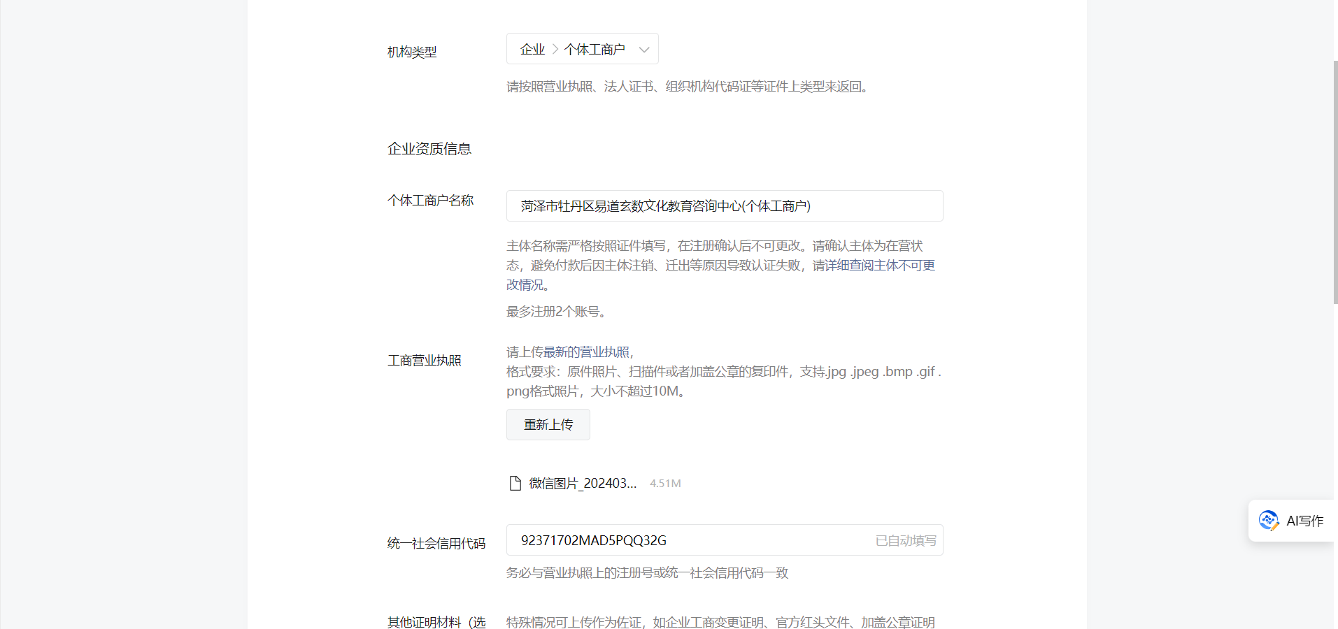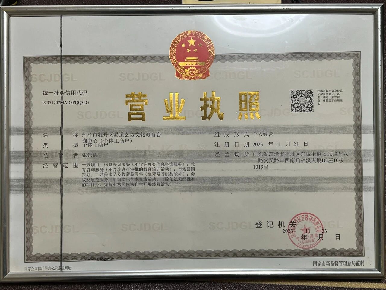 公众号主体信息:菏泽市牡丹区易道玄数文化教育咨询中心(个体工商户)