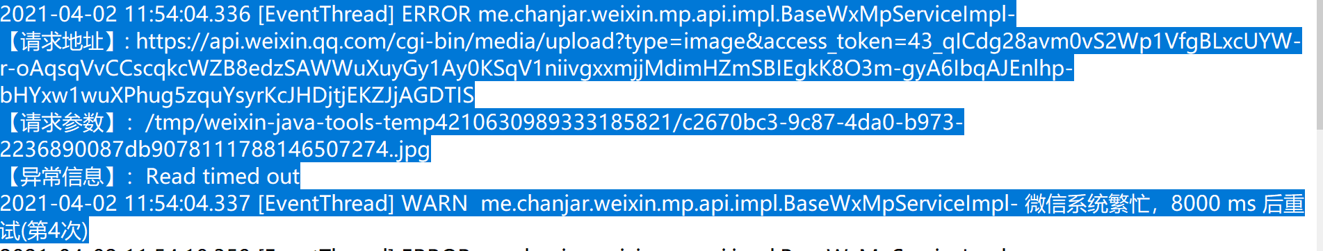 小一点的图片可以发送,但大一点的图片(比如3M)无法发送,提示系统繁忙,最后超时。