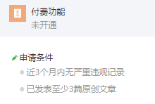 请问:我有一篇图文原创和3个视频原创,为什么开通付费功能时还说条件未达到呢?谢谢!