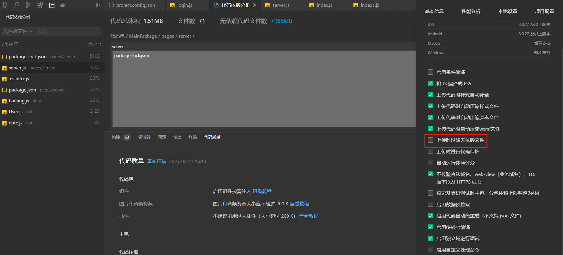 但是在真机测试的时候,一个问题是我上传代码,server.js中使用了express框架,这个需要node_modules中一些包,但这个没上传(不知道是不是这个的原因?)