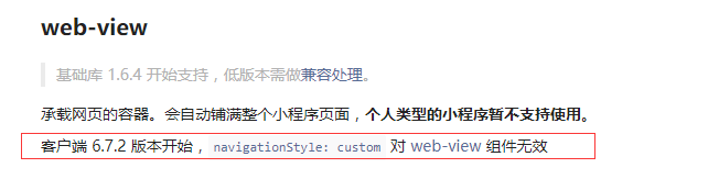 wxxml <web-view src="{{url}}" > </web-view> json "window": { "navigationStyle":"default", "navigationBarTextStyle":"black", "navigationBarBackgroundColor":"#29BA3B" }