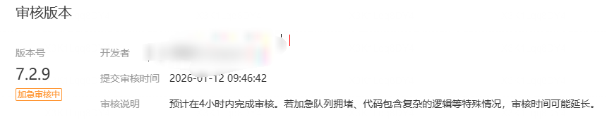 虽然审核说是7个工作日,但2026年之前审核都很快,上午提审,下午就有结果了。