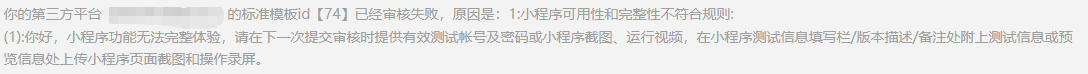 开放平台中,标准模板库的模版提交审核,未通过,提示要填写资料。可是填写在哪?