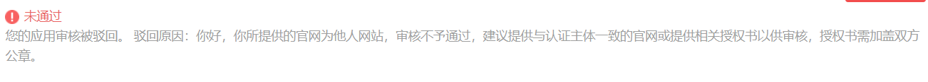 建议提供与认证主体一致的官网地址,但是认证主体是个人。我是用公司的官网地址也没有通过,怎么解决呢?