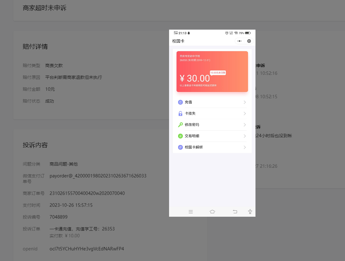 经过平台分析,用户充值已到账,需要学生持卡到线下设备上领款。不应该是商责欠款,请问如何处理?