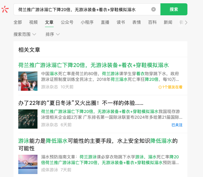 通过朋友圈搜索可见,我早在2021年7月已经发布,但是搜索我个人公众号全部标题,在文章上找不到相关内容。我公众号专注于游泳垂直领域,游泳比赛报道、游泳比赛报名、游泳池水质都是第一时间发布,特别是海外游泳比赛相关内容都是第一手内容,围绕游泳运动员、游泳教练发布相关内容,绝无其他相关,也遵守微信公众号相关规定,就是找不到为什么?请官方给予答复,非常感谢。